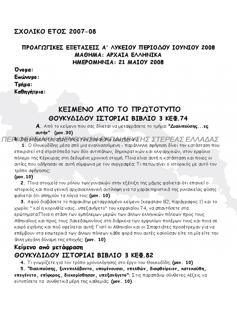 Διαγωνισμα αρχαιων ελληνικων κατευθυνσησ γ λυκειου ενοτητα 15 πολιτικα download προτεινόμενα θέματα 2011 11 3 2011 διαγωνισμα αρχαιων ελληνικων. «τα θέματα της βιολογίας κάλυπταν πολύ μεγάλο μέρος της ύλης και ήταν μέτριας και κλιμακούμενης δυσκολίας» συγκεκριμένα, τα θέματα α και β χρειάζονταν καλή γνώση και κατανόηση της ύλης. Savesave θεματα αρχαιων.pdf for later. Πανελλαδικώς εξεταζόμενα μαθήματα των ημερησίων και εσπερινών γελ με το νέο σύστημα. Θέματα και απαντήσεις αρχαίων ελληνικών (πανελλαδικές 2020).